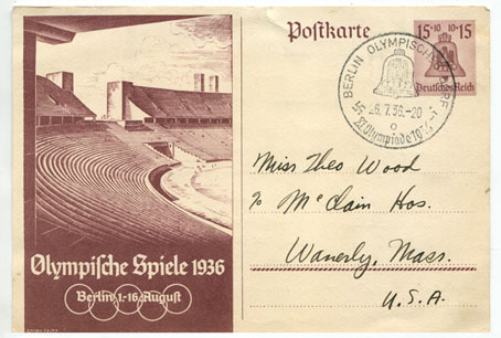 Sent from the 1936 Berlin Olympics
