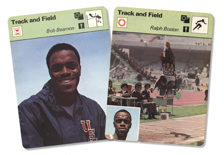 Enter our Trivia Contest this month, you could win these vintage cards of Gold Medalists Bob Beamon and Ralph Bostonn!